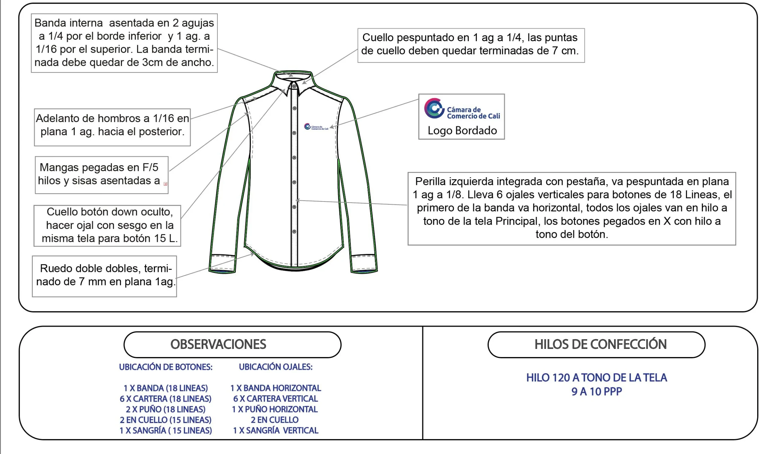 El detalle que define la exclusividad de esta dotación es el logo bordado de la Cámara de Comercio de Cali. Aplicado con tecnología de alta precisión en el punto del corazón y/o espalda, utilizamos hilos de primera calidad que garantizan que la identidad de la marca se mantenga nítida, vibrante y duradera lavado tras lavado.