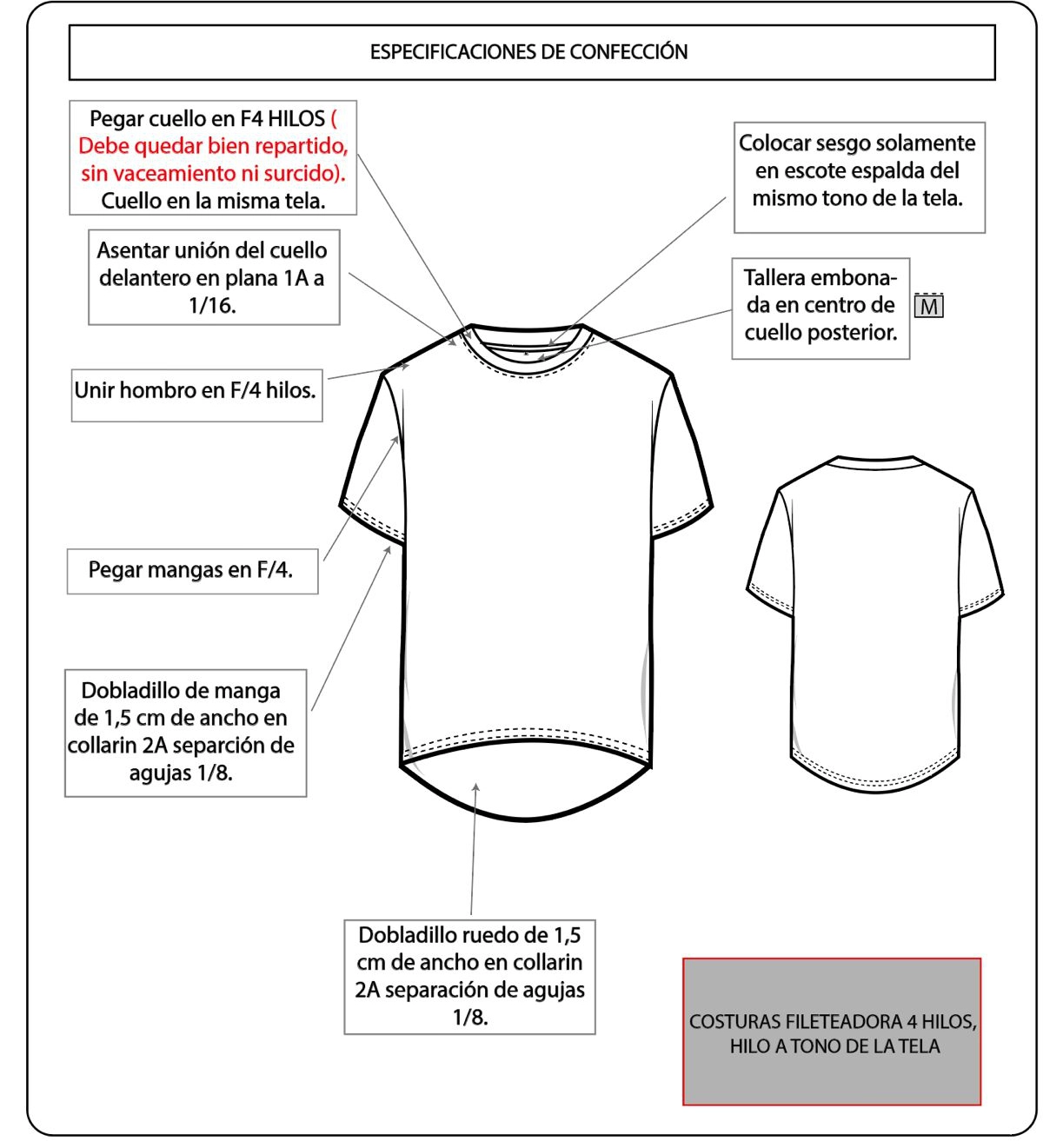 - Hilos de Confección: Hilo 120 a tono de la tela, con una densidad de 9 a 10 puntadas por pulgada (PPP).